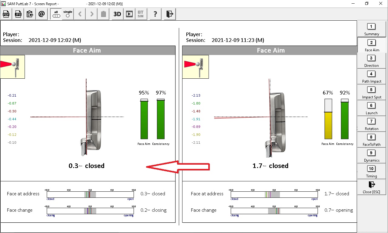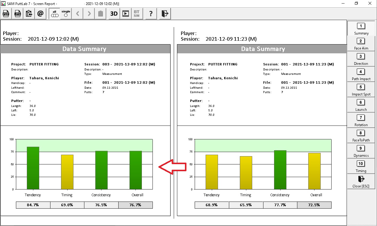 私一応、PUTTLABを使用したレッスンの資格を取得いたしましたので、フィッティングにところどころレッスンのようなものをはさみながら進めさせていただいております。