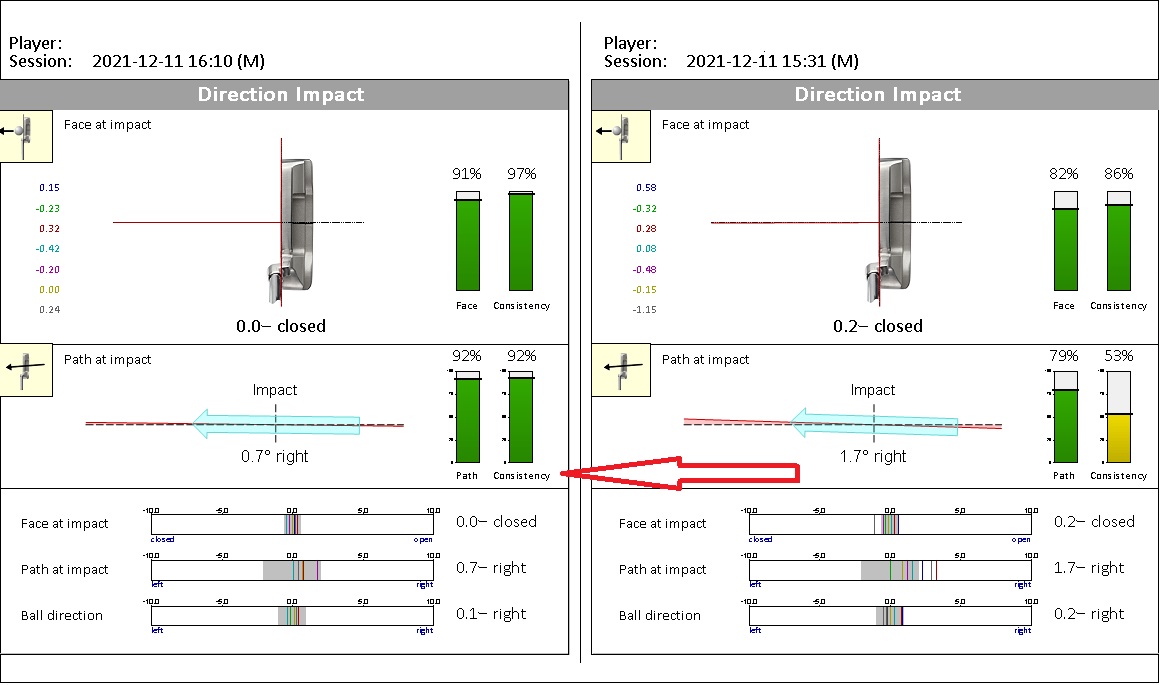 クラブを変えたからと言って、アウトサイドインの軌道の人が、インサイドアウト軌道や、真っすぐな軌道になるはずはありません。